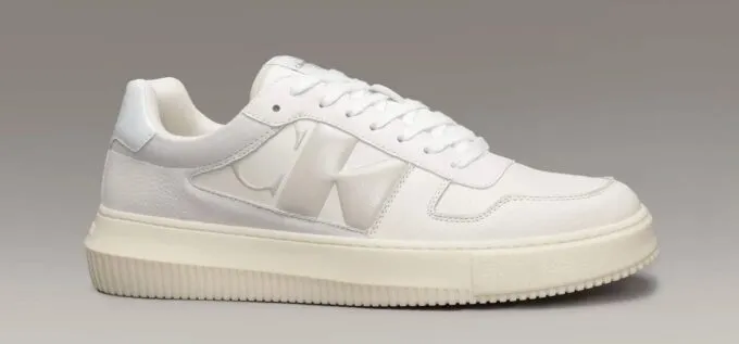 Теперь взгляните на белые кеды Chunky Cupsole. Это отличный выбор для тех, кто предпочитает светлую обувь. Дизайн аккуратный, подошва толстая, а верх выполнен из композиционной кожи. На язычке и боковой части айтема расположились фирменные логотипы Calvin Klein.