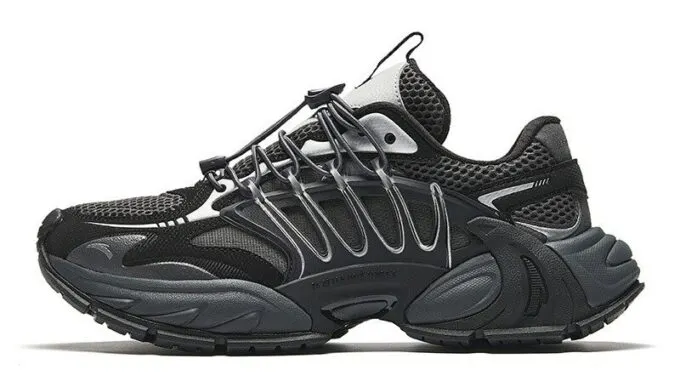 А вот и грандиозный финал – черно-серые Retro Peacock. Это массивные кроссовки, которые радуют необычным силуэтом и уникальным дизайном. Тут вам и шнуровка с фиксаторами, и дышащий сетчатый верх, и амортизирующая ЭВА-межподошва с технологией A-Flashledge. Еще одна приятная особенность – ТПУ-каркас, гарантирующий мягкость и стабильность. Комфорт во время ходьбы обеспечен.