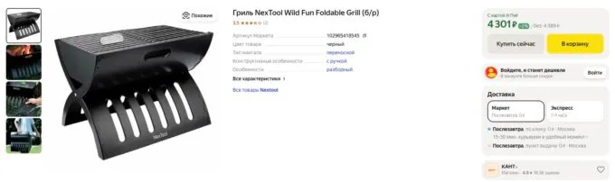 Прямо сейчас складной мангал NexTool Camp Fun Folding Barbecue Grill можно урвать на Яндекс Маркете за 4301 рубль. А с кэшбеками некоторых банков он обойдётся ещё дешевле.