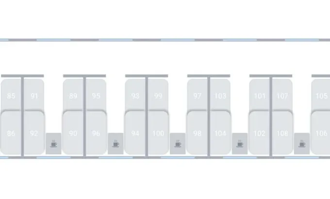 Но многим нравится и такой дизайн, где четыре места в одном купе образуют квадрат — в схеме от Яндекс Путешествий стенок и столиков вообще нет.