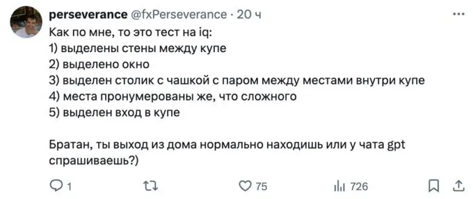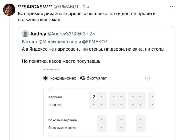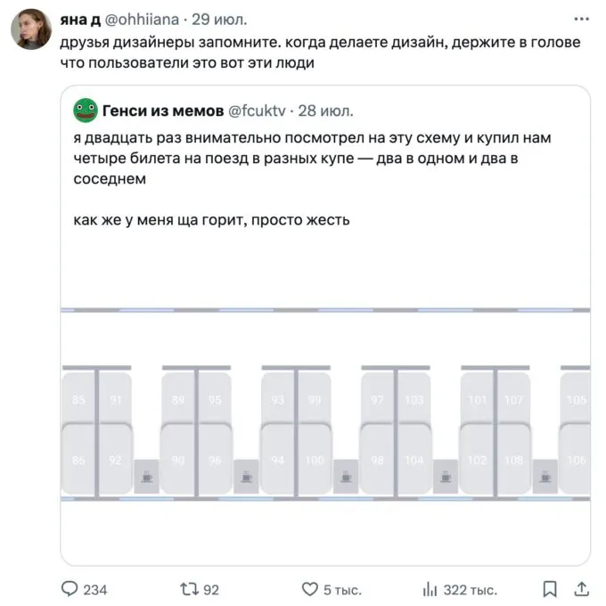 Большая часть комментаторов не согласна с автором. По их мнению, во-первых, дизайнер сайта выделил купе перегородками, во-вторых, добавил столики для упрошенной ориентации. Что не так, Гэнси?