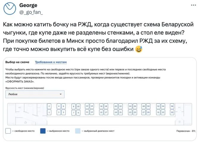 Мужчина купил билеты на поезд в разные купе – он винит дизайн сайта РЖД. В соцсетях спорят, прав он или нет