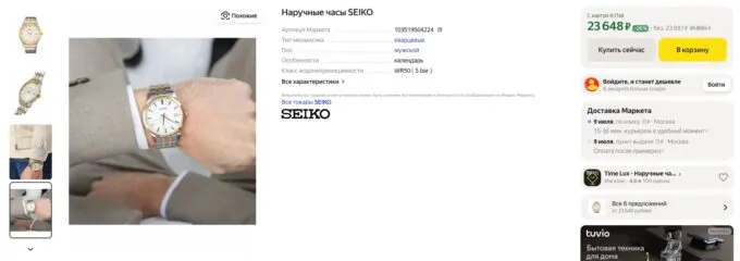 Сейчас солидные часы Seiko Discover More SUR402P1 можно приобрести на Яндекс Маркете за 23 648 рублей, а с кэшбеком некоторых банков они обойдутся немного дешевле.
