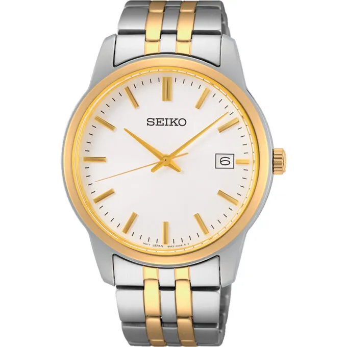 Seiko Discover More SUR402P1 — классические мужские часы на автоматике в круглом стальном корпусе с частичным PVD-покрытием. Модель выглядит солидно, но не перегружена лишним декором. Циферблат защищён минеральным стеклом, стрелки и индексы покрыты люминесцентным составом. Задняя крышка тут прозрачная, с завинчивающимся механизмом, а застёжка — тройная, с блокировкой от случайного открытия.