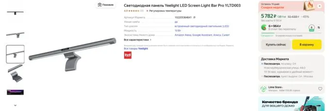 Сейчас на Яндекс Маркете топовую лампу Yeelight LED Screen Light Bar Pro можно купить всего за 5782 рубля. Также не забывайте про кэшбеки некоторых банков, которые помогут ещё больше сэкономить на покупке.