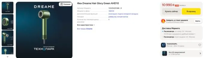 Прямо сейчас стильный фен Dreame Hair Glory Master можно купить на Яндекс Маркете всего за 10 990 рублей. Также не забывайте, что некоторые банки готовы отсыпать кэшбек за покупки на этой платформе.