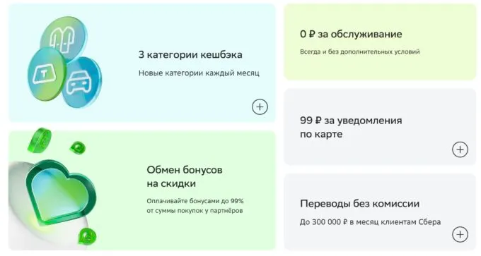 Также на бесплатном тарифе Сбер предложил 3 категории кэшбека и увеличенный — до 300 тысяч рублей — лимит переводов.