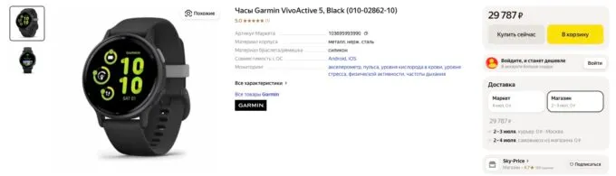 Прямо сейчас на Яндекс Маркете спортивные Garmin vivoactive 5 можно купить всего за 29 787 рублей, а с кэшбеками некоторых банков они обойдутся ещё дешевле.