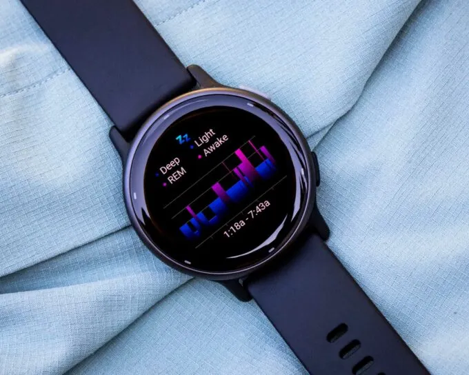 Garmin vivoactive 5 — одни из самых сбалансированных смарт-часов для тех, кто не хочет выбирать между стандартным умным гаджетом и мощным трекером тренировок. Дизайн у модели классический: круглый корпус, алюминиевая рамка и строгий минимализм. Почти как в Amazfit Balance или Huawei Watch GT5, но с более выраженным акцентом на спорт. На руке эти Garmin почти не ощущаются, поэтому их комфортно использовать для мониторинга сна. На выбор доступно четыре расцветки — можно выбрать под любой стиль одежды.