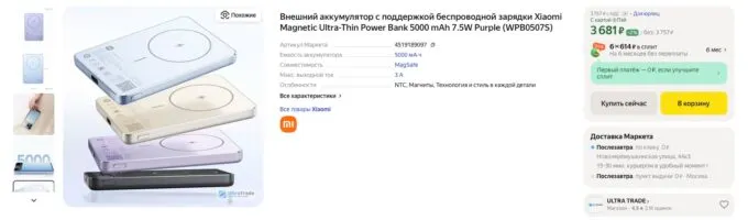 Сейчас на Яндекс Маркете новый пауэрбанк Xiaomi Magnetic Ultra-Thin Power Bank 5000 mAh можно купить всего за 3861 рубль. А с кэшбеком некоторых банков он обойдётся ещё дешевле.