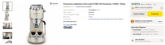 Сейчас на Яндекс Маркете стильную кофеварку DeLonghi Dedica Arte EC885 можно урвать за 21 671 рубль. Также не забывайте, что многие банки готовы отсыпать кэшбек с покупок на этой платформе.