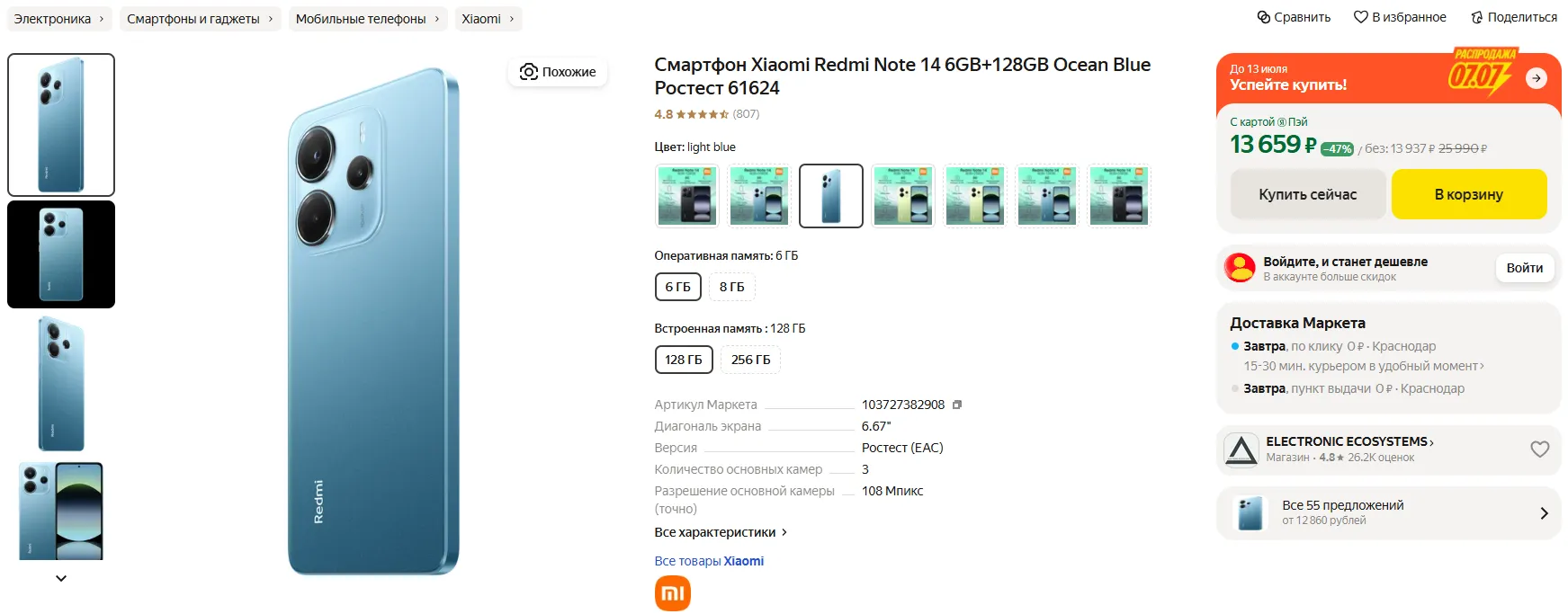 Ищете смартфон до 15 тысяч, но не доверяете свежим вендорам вроде Infinix или Tecno? Тогда обязательно присмотритесь к Redmi Note 14 — это девайс со сбалансированными характеристиками, выпущенный самым популярным в России производителем мобилок.