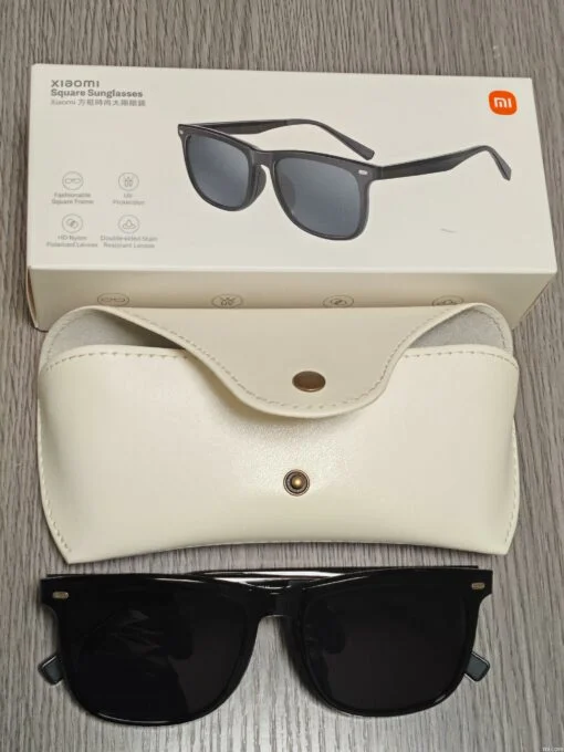 Ещё одна крутая фича Mijia Square Frame Fashion — линзы из немецкого нейлона с поляризацией и защитой UV400. Они блокируют до 100% ультрафиолета, уменьшают блики и передают натуральные цвета. Конструкция из 8 слоёв дополнена двойным олеофобным покрытием: отпечатки на них не остаются, а грязь легко удаляется. В комплекте есть светлый жёсткий чехол и салфетка для протирки. В целом это качественный и модный аксессуар за разумные деньги.
