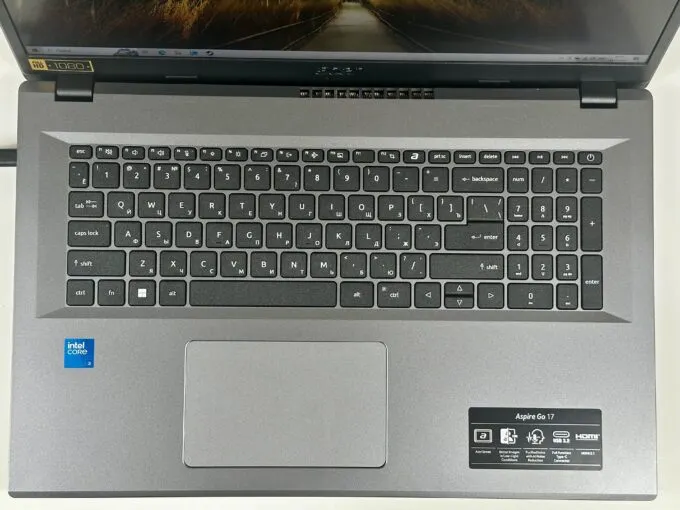 Благодаря размерам клавиатура разместилась здесь очень вольготно — есть подобие фаски по бокам, нашли место и для цифрового блока. Но размер клавиш Enter и стрелочек уменьшили — как и на многих менее крупных ноутбуках. Тачпад немного смещен влево, но пользоваться им удобно. Несмотря на 17-дюймовую диагональ, с дефолтными настройками курсор легко пересекает экран от угла до угла одним махом пальца. К сожалению, клавиатура не имеет подсветки и сканера отпечатка пальцев. Но ход клавиш приятный, а все символы находятся на своих местах. Например, нет бесполезной в РФ кнопки Copilot.