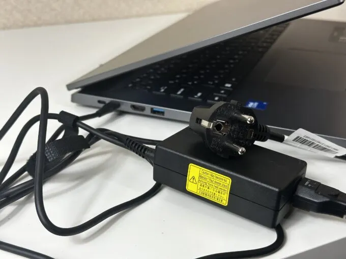 В комплекте есть провод с блоком питания, но зарядка занимает мало места и поддерживает мощность до 45 Вт. Производитель советует пользоваться оригинальным ЗУ, но я спокойно подключал ноутбук к зарядке от компьютера Apple и iPhone — все отлично работает.