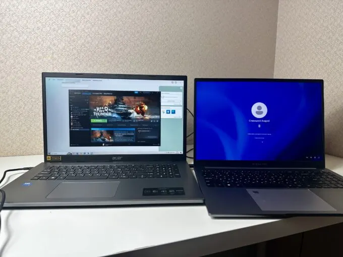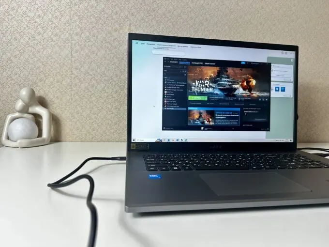 Всегда говорю это при обзоре недорогих ноутбуков: такой гаджет — не для игр. Здесь недостаточно мощный процессор, мало оперативной памяти и нет дискретной видеокарты. Но в игры прошлых лет, популярные онлайн-тайтлы, простенькие стратегии и квесты поиграть можно. Например, CS2 и War Thunder ноутбук запускает с минимальными настройками и частотой не выше 30 fps — играть можно (даже в онлайн-игры), если поставить щадящие параметры. То есть погонять после работы в танки или зарубиться в доту вполне реально. Для старых офлайн-тайтлов и медитативных игр Aspire 3 подойдет хорошо.