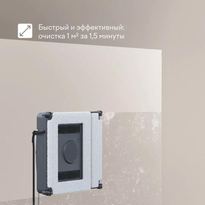 Ещё Tuvio TVR02W работает с приличной скоростью — примерно 1,5 минуты на квадратный метр. Встроенные резервуары под воду и моющее средство по 30 мл позволяют обойтись без брызгалок. Подключил, включил — и вперёд. Производитель предусмотрел три режима автоматической уборки. Управлять можно пультом или через приложение. Мягкие насадки аккуратно полируют стекло, не оставляя разводов и царапин. А умные сенсоры не дают гаджету соскочить даже с безрамочных конструкций.