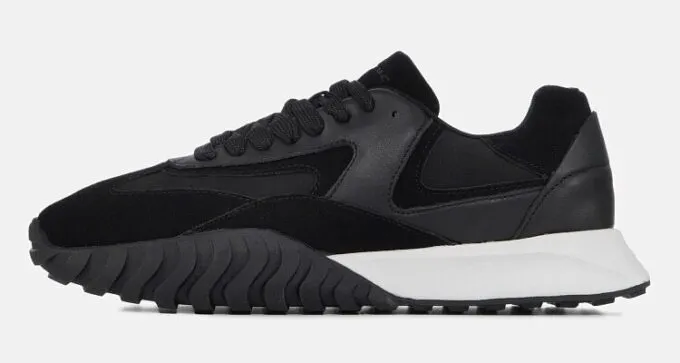 Теперь взгляните на черно-белые Cheek – массивные кроссовки с верхом из натуральной кожи. Легкая ЭВА-межподошва отвечает за амортизацию, а цепкий рисунок протектора обеспечивает отличное сцепление с дорогой. Внимания заслуживает и необычная подошва – нечто похожее вы могли видеть на New Balance XC-72.