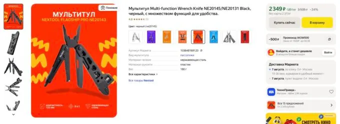 Прямо сейчас на Яндекс Маркете флагманский мультитул Xiaomi NexTool Multi-function Wrench Knife можно купить всего за 2349 рублей. Также не забывайте, что многие банки готовы отсыпать небольшой кэшбек за покупки на этой платформе.