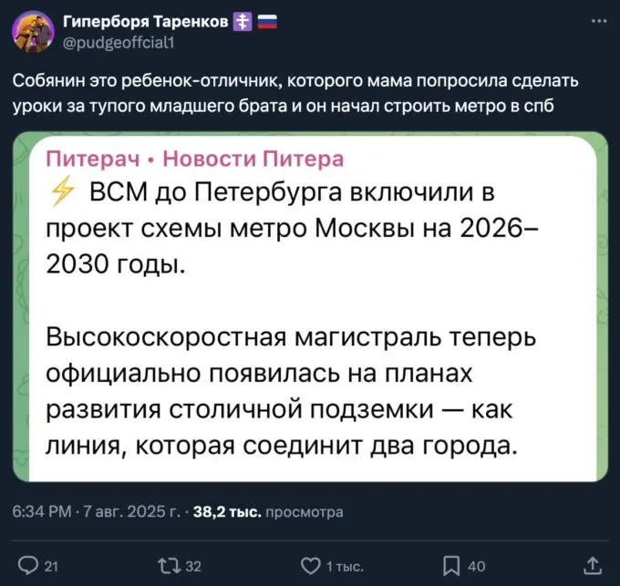 Московское метро соединят с питерским. И это не совсем шутка