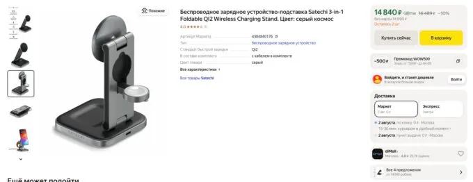 Обычно за Satechi 3-in-1 Foldable Qi2 Wireless Charging Stand просят под 20 тысяч, но сейчас флагманскую зарядку можно купить на Яндекс Маркете всего за 14 840 рублей. Также не забывайте, что некоторые банки готовы отсыпать кэшбек за покупку на этой платформе.