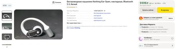 Прямо сейчас фирменные наушники Nothing Ear (Open) можно урвать на Яндекс Маркете за 9616 рублей. Также не забывайте, что вы можете сбить цену бонусами и получить кэшбек.