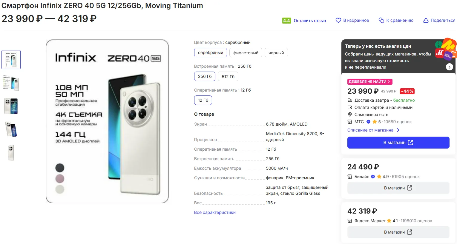 Представленный год назад Infinix Zero 40 5G не стал хитом продаж, хотя мы частенько рекомендовали его к покупке. С характеристиками у него все в порядке, к тому же продавцы постепенно снизили ценники на эту модель. Например, сейчас за «зеро» просят минимум 23 990 рублей.
