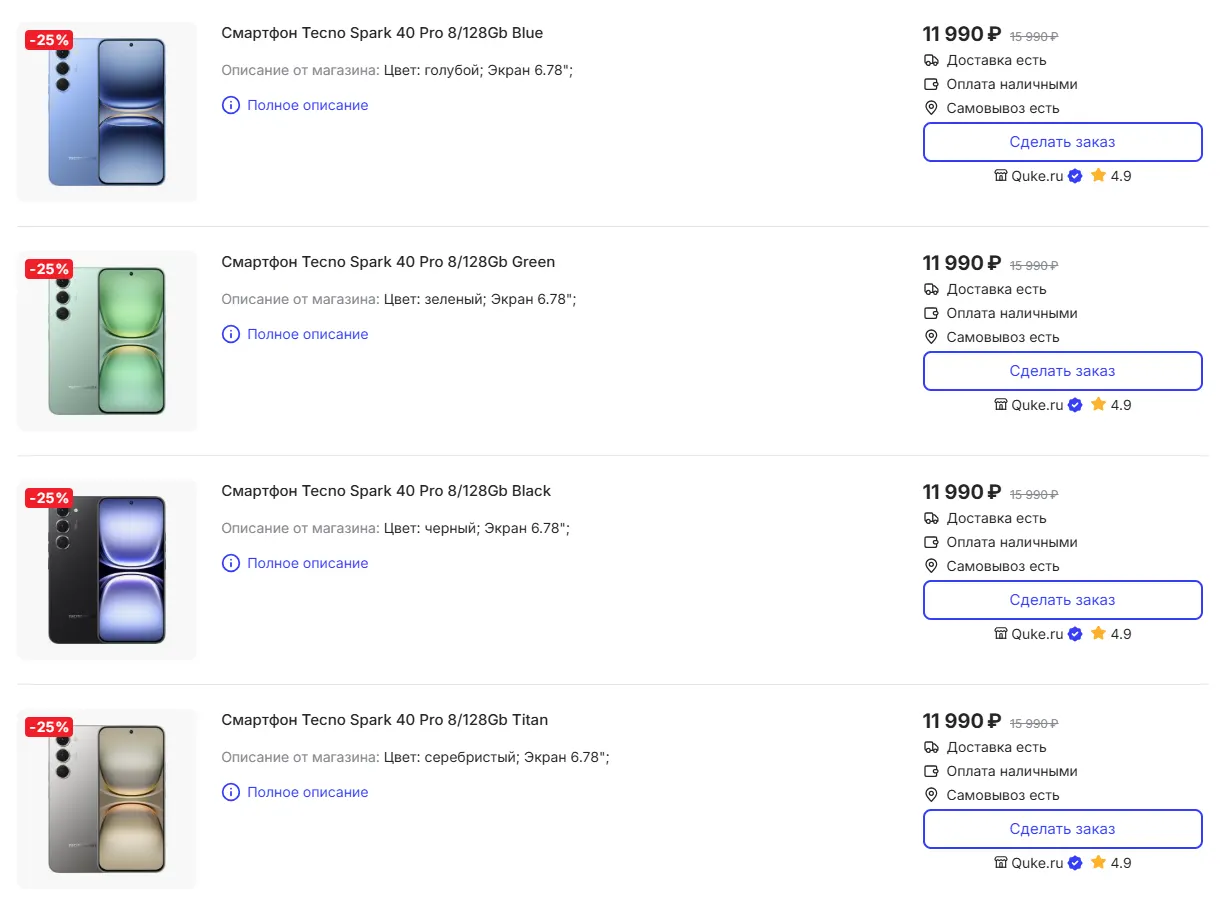 Tecno Spark 40 Pro — один из свежайших смартфонов быстрорастущего вендора. Мы приметили этот девайс как только он вышел, а сейчас заметили, что новинка серьезно подешевела на price.ru — на этой площадке за «прошку» просят минимум 11 990 рублей.