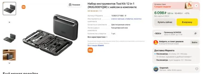 Прямо сейчас на Яндекс Маркете солидный ремонтный набор Xiaomi Mijia Toolbox можно купить за 6098 рублей. Также не забывайте, что с кэшбеками некоторых банков она обойдётся ещё дешевле.