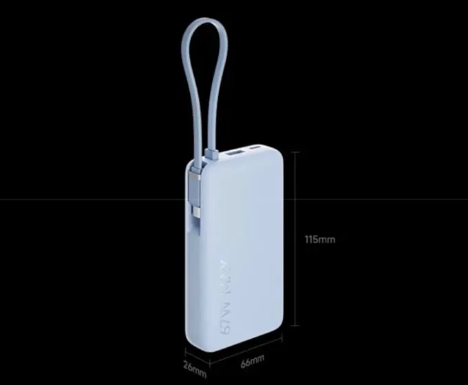 Компания Xiaomi начала китайские продажи нового компактного пауэрбанка. У него популярный форм-фактор — прямоугольный округлый корпус и встроенный кабель, который также выполняет функцию ручки для переноса.