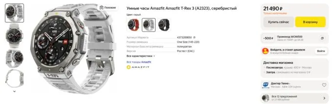 Сейчас мощные Amazfit T-Rex 3 можно урвать на Яндекс Маркете всего за 21 490 рублей, а с кэшбеками некоторых банков они обойдутся ещё дешевле.