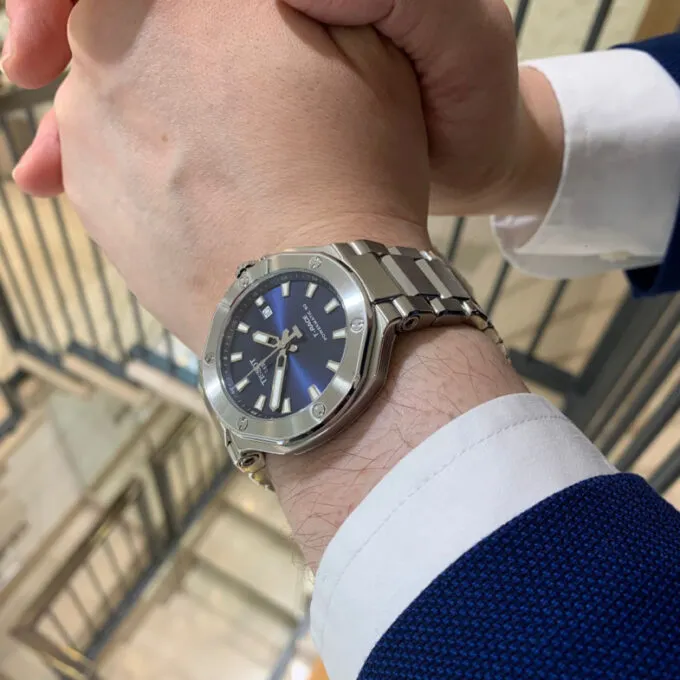 Внутри Longines HydroConquest (L3.742.4.56.6) установлен механизм Longines L888 с запасом хода 64 часа. Влагозащите в 300WR позавидуют даже самые мощные субмаринеры от Rolex. Плюс тут реализована система удлинения браслета, которая облегчает использование поверх гидрокостюма. Это буквально премиальные часы на всю жизнь.