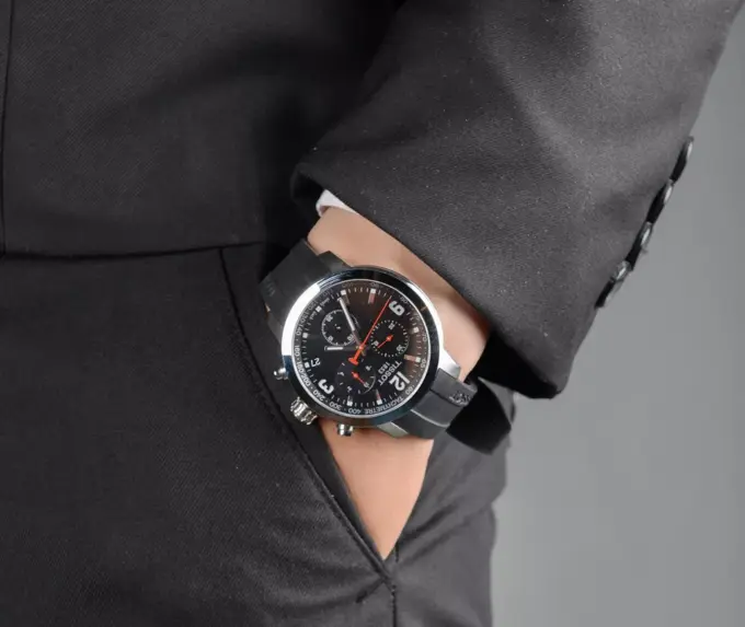 Самый дерзкий хронограф этой подборки со швейцарским кварцевым механизмом — Tissot PRC 200 T114.417.17.057.00. Модель оснащена секундомером, тахиметром и индикатором окончания заряда батареи (EOL). Корпус выплавлен из добротной стали, а сапфировое стекло и каучуковый ремешок формируют универсальное комбо для активной носки.