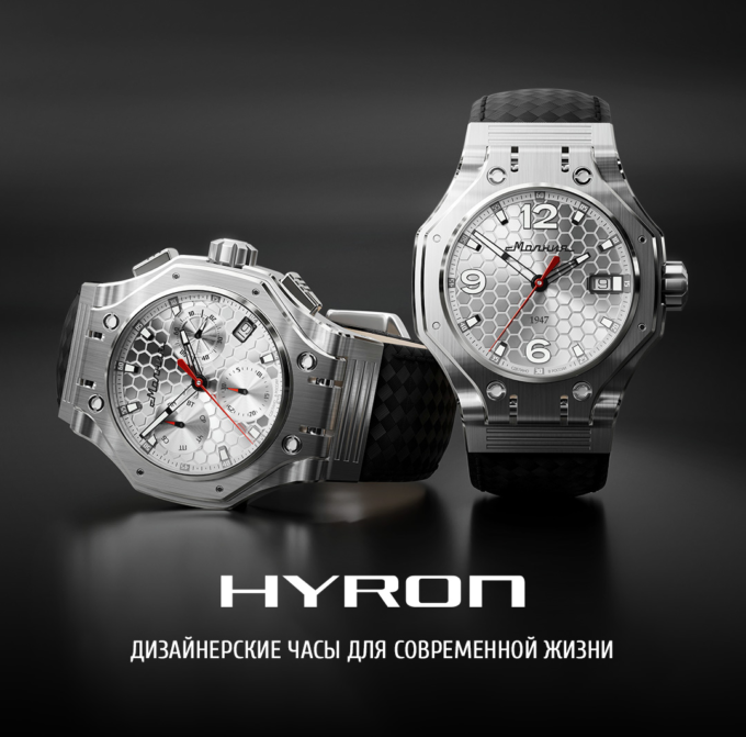 Молния Hyron (M0180102-1.0) — мощный отечественный хронограф с дерзким характером. Модель создана в коллаборации с дизайнером Йоргом Хайзеком. За основу взяли башню танка Т-90, а на выходе получился массивный стальной корпус с сапфировым стеклом толщиной 2 мм, карбоновым ремешком и винтовой крышкой. Эти часы не только выглядят мощно и внушительно, но и способны выстоять под любыми ударами судьбы.