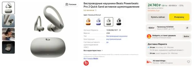 Сейчас на Яндекс Маркете флагманские наушники Beats Powerbeats Pro 2 можно урвать за 24 740 рублей. А с кэшбеком некоторых банков вы сэкономите ещё больше.