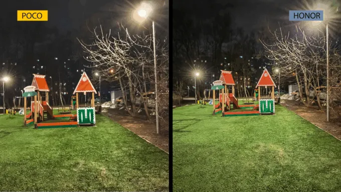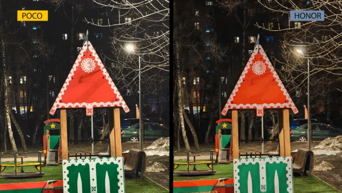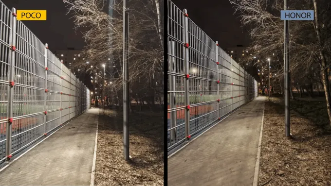 Как и подобает флагманам, оба смарта отлично справляются со съемками даже при слабом освещении. Однако снимки на Honor Magic7 получаются более детализированными и насыщенными, в то время как «поко» снимает более натурально.