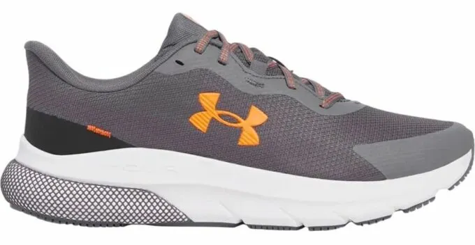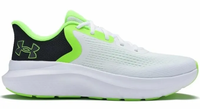 Начнем с белых Charged Rogue 5 – ультралегких кроссовок для беговых тренировок. Тут вам и дышащий текстильный верх, плотно прилегающий к стопе, и съемная стелька с эффектом памяти, и фирменная технология Charged Cushioning. Она отвечает за амортизацию и обеспечивает возврат энергии, снижая вашу утомляемость во время занятий спортом.