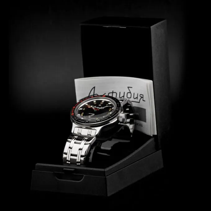 Функциональность у этой модели Восток Амфибия тоже не подкачала: светонакопительное покрытие на стрелках и метках обеспечивает читаемость в темноте, браслет из нержавеющей стали удобен и долговечен, а органическое стекло защищает циферблат от повреждений. Финальный штрих — мощная влагозащита в 200WR, которая позволяет нырять и заниматься дайвингом. Безусловно, это один из лучших вариантов для любителей классики в сегменте до 10 тысяч рублей.