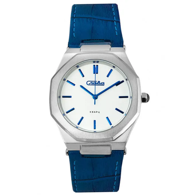 Слава Традиция 2381484/300-2035 — недорогая классика с узнаваемым восьмиугольным корпусом, явно вдохновлённым Audemars Piguet Royal Oak. Корпус выполнен из металла, циферблат прикрыт минеральным стеклом с сапфировым напылением, внутри установлен японский кварцевый механизм Miyota 2035. Часы отличаются точностью, простотой обслуживания и надёжностью в повседневном использовании. Дополняет стиль кожаный ремешок со стандартной застёжкой.