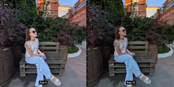 Девайс вышел с тремя камерами и получил телеобъектив. Если кратко, то хорошо, что появился телевик. Но какой ценой! В сравнении с Pixel 9 камера будто стала снимать хуже. Тут выбирали между двумя модулями получше или тремя модулями, но похуже. К сожалению для потребителя, выбрали второе.