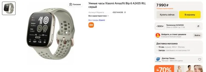Прямо сейчас отличные часы Amazfit Bip 6 можно урвать на Яндекс Маркете всего за 7990 рублей. Также не забывайте, что многие банки готовы отсыпать кэшбек за покупки на этой платформе.