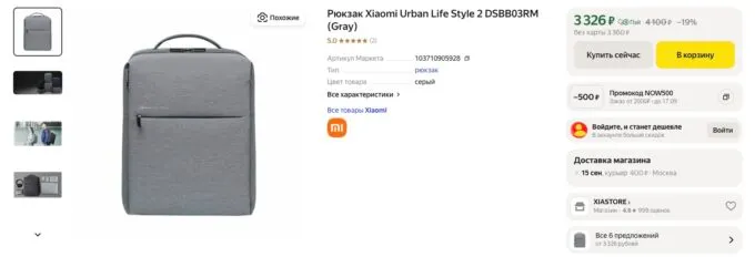 Сейчас на Яндекс Маркете легендарный рюкзак Xiaomi Urban Backpack 2 можно урвать всего за 3326 рублей. Также не забывайте про кэшбеки, которые некоторые банки готовы отсыпать за покупки на этой площадке.