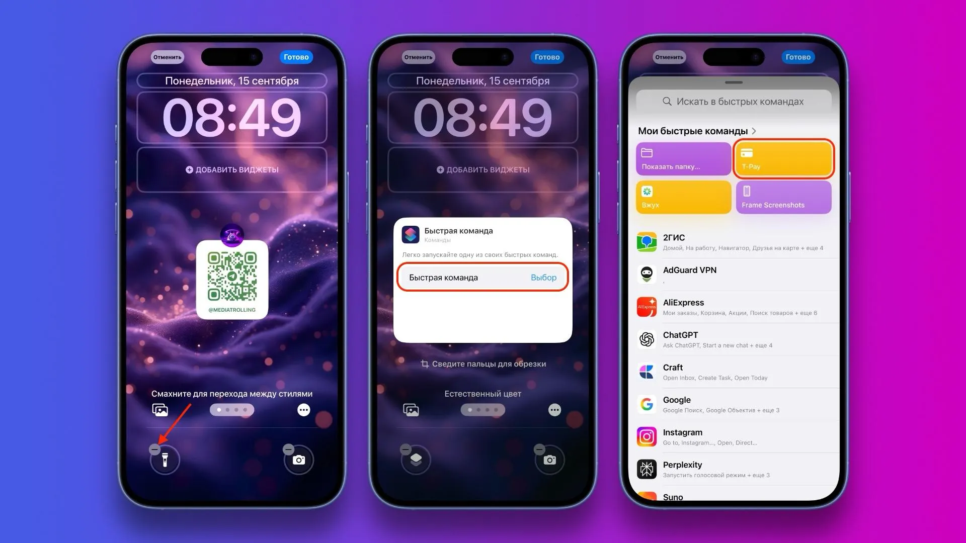 Также можно назначить кнопку быстрого запуска на экран блокировки (заменить кнопку с фонариком или камерой). Инструкция от нашего коллеги Георгия Лямина на картинке ниже: