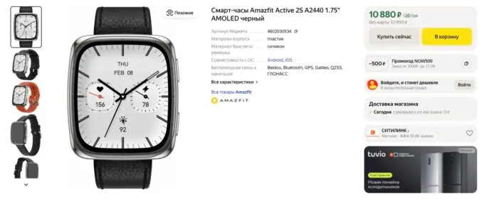 Прямо сейчас новейшие часы Amazfit Active 2 Square можно урвать на Яндекс Маркете всего за 10 880 рублей. Также не забывайте, что многие банки предлагают кэшбек за покупки на этой платформе.