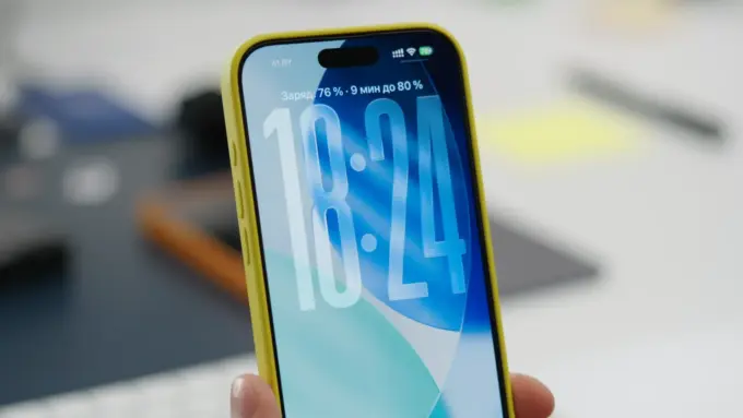 Юзера с iOS 26 будет видно сразу. В этом поколении Apple разрешила растягивать часы на локскрине до гигантских размеров. Также при подключении зарядки на экране появляется прогнозируемое время до того, как батарея наберет 80%. Кстати, в новом дизайне виджеты сползли с верхней части экрана вниз.