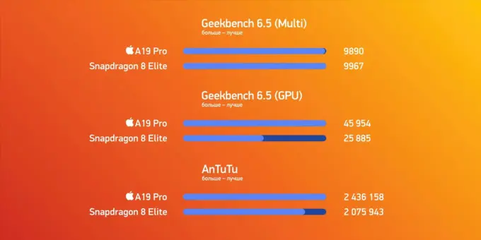 Чип A19 Pro и 12 Гбайт ОЗУ творят безумие. В синтетических тестах процессор 17 Pro уделывает конкурента от Qualcomm. Но если вы возьмете новый аппарат после 16 Pro, то буста производительности не заметите. Вообще никак.